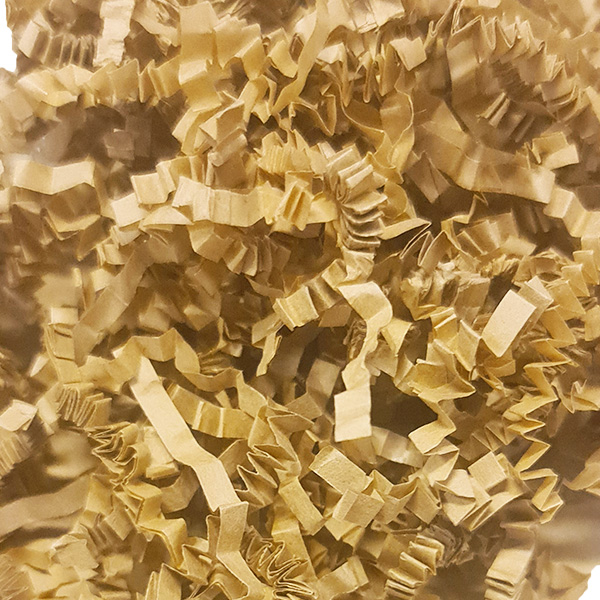 Detta miljövänliga alternativ består av strimlat papper i naturlig färg, perfekt anpassat för att fylla tomrum i kartonger och skydda ömtåliga varor. Materialet är lätt att arbeta med och formar sig smidigt runt dina produkter för maximal säkerhet under leveransen.