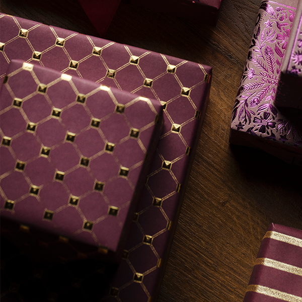 Detta presentpapper erbjuder en perfekt balans mellan estetik och funktionalitet. Det eleganta diamantmönstret i lila ger varje present ett raffinerat utseende som förhöjer mottagarens upplevelse, samtidigt som papprets kvalitet garanterar ett professionellt resultat vid varje inslagning.
